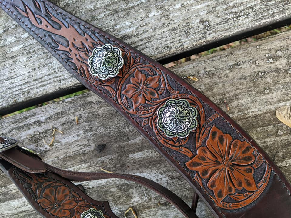 MADE TO ORDER - Floral Basketweave Straight Body Spur Straps